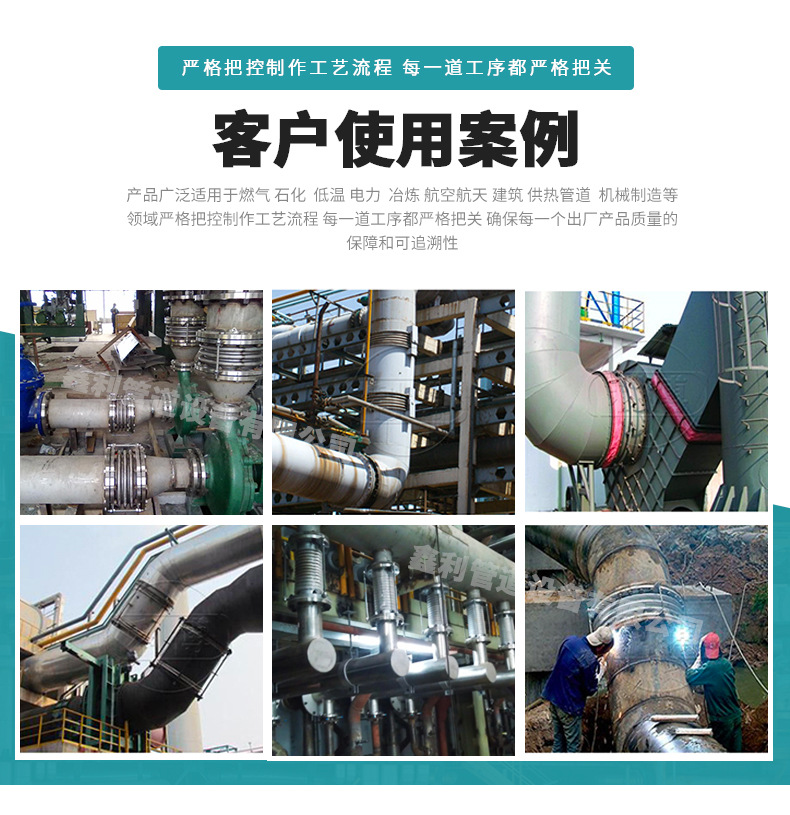 在正常狀況下,用金屬波紋管原材料理應(yīng)合乎以下標(biāo)準(zhǔn):高彈力極限,抗壓強(qiáng)度和疲勞強(qiáng)度,以保證 金屬波紋管工作中。優(yōu)良的延展性,以便捷金屬波紋管成形生產(chǎn)加工,并根據(jù)接著的處理方式,以得到充足的強(qiáng)度和抗壓強(qiáng)度。不銹鋼板金屬波紋管管道補(bǔ)償器優(yōu)良的耐蝕性能,以達(dá)到金屬波紋管的工作中在不一樣的自然環(huán)境規(guī)定。針對(duì)管道補(bǔ)償器的補(bǔ)嘗安裝差值:因在管路聯(lián)接全過程中,系統(tǒng)誤差再所免不了,化學(xué)纖維管道補(bǔ)償器能夠更合理地補(bǔ)嘗安裝差值。補(bǔ)嘗熱變形則可補(bǔ)嘗多方位,更好于只有借助單注補(bǔ)嘗的金屬補(bǔ)償器。針對(duì)管道補(bǔ)償器的消音減震作用:化學(xué)纖維紡織物、保溫材料體自身具備吸音、隔振動(dòng)傳送作用,能合理降低加熱爐、離心風(fēng)機(jī)等系統(tǒng)軟件的噪音和振動(dòng)的發(fā)生。